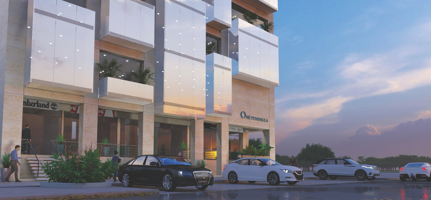 1 Peninsula has a lower ground floor, Ground floor and five podium levels, the Top floor is dedicated From gym and roof top lawn. Is not only characterized by its unprecedented aesthetic attractiveness but also by its functionality and convenience.